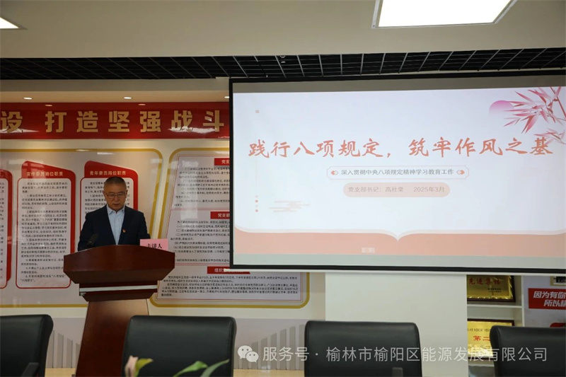 為切實(shí)推動(dòng)中央八項(xiàng)規(guī)定精神在公司落地,進(jìn)一步強(qiáng)化黨員干部的紀(jì)律意識(shí),扎實(shí)推進(jìn)公司黨風(fēng)廉政建設(shè)工作,2025年3月18日,榆陽(yáng)區(qū)能源發(fā)展有限公司黨支部召開黨員大會(huì),由黨支部書記高社堂主持,全體黨員參會(huì)。